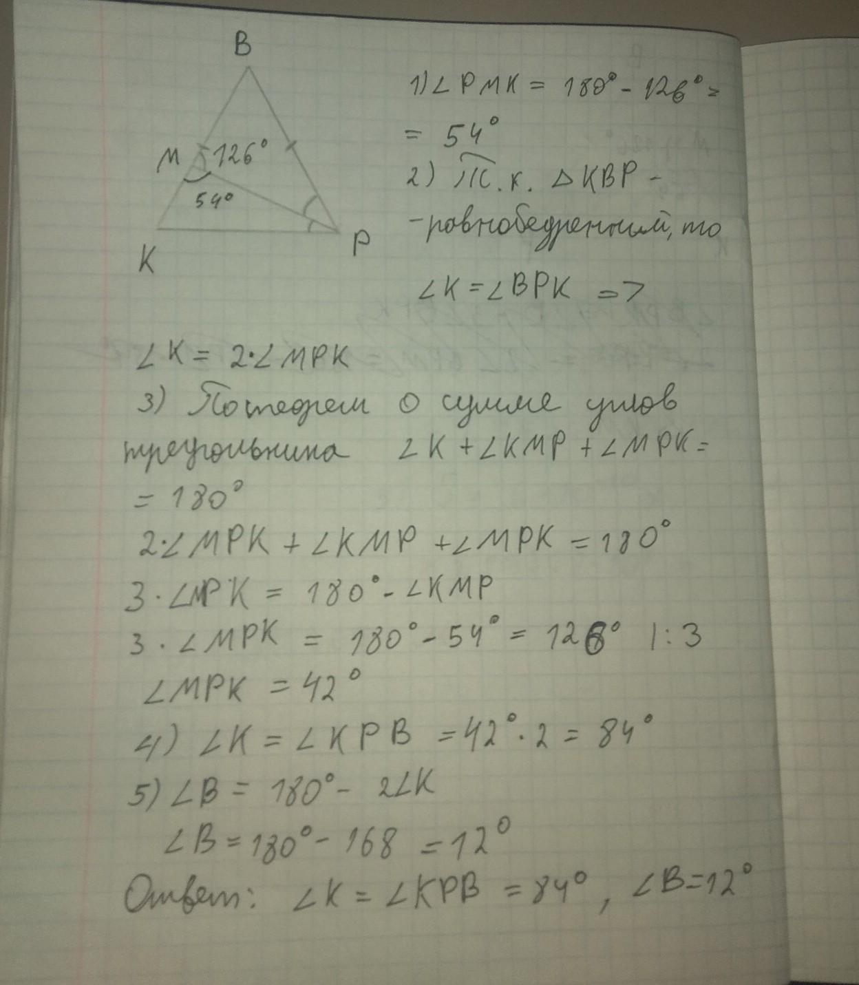 ∡ PMB = 126°. Определи величины углов данного треугольника (если это необходимо, промежуточные вычисления и ответ округли до тысячных).