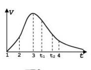1. При прямолинейном движении материальной точки ее скорость изменяется с течением времени так, как показано на рисунке. В какие из пронумерованных на рисунке моментов времени ускорение точки имеет максимальное и минимальное значения? Как на основании графика определить среднюю скорость в промежуток времени t1 от до t2? Определить участки соответствующие ускоренному и замедленному движениям. Ответ пояснить.