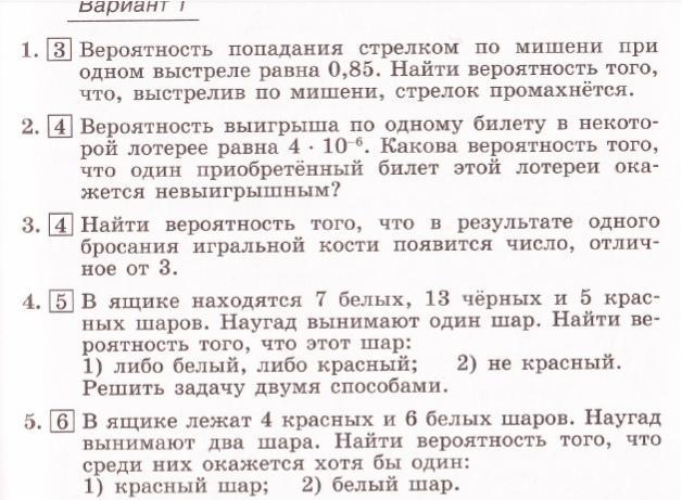 Задания на вероятность события.
