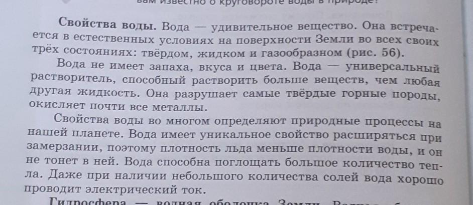 на стр 84 в 1 разделе ,,Свойства воды" найдите и выпишите 7 пунктов способностей воды.