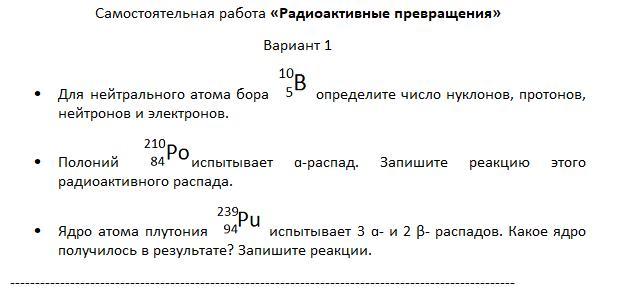 Самостоятельная работа «Радиоактивные превращения» по Физике
