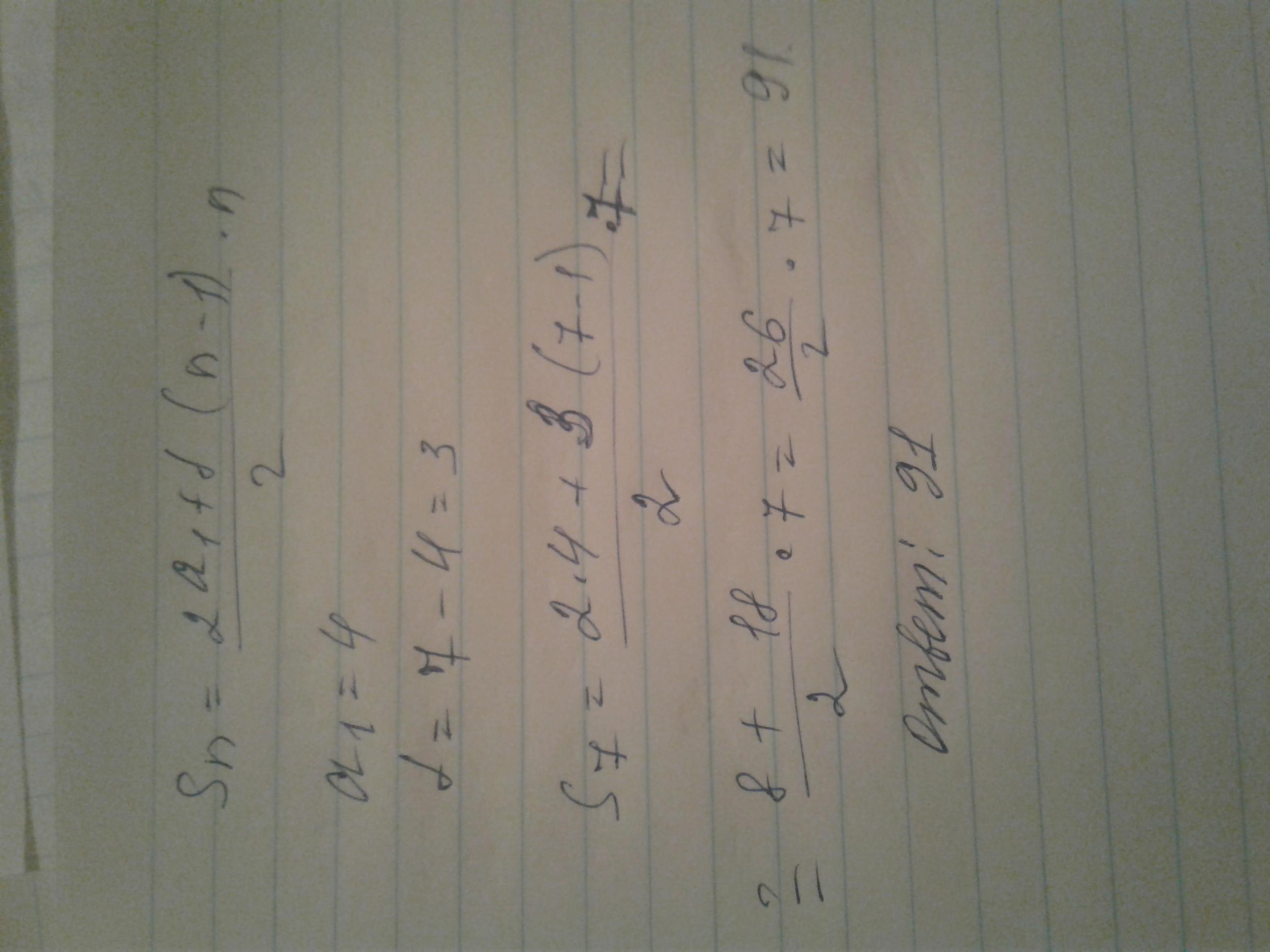 Выписаны первые несколько членов арифметической прогрессии: 4; 7; 10;... Найдите сумму первых семи её членов
