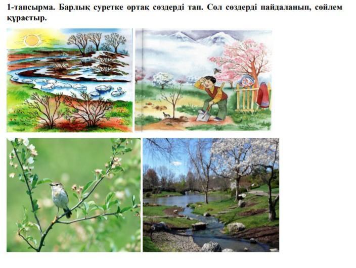 Көктем келді. Қар еріп жылғалардан су ағып, дала әсем күйге енді. Ағаштар бүршік жарып, тіпті гүлдеп тұр. Есік алды тазартылып, жаңадан ағаштар отырғызылуда. Күн жылығандықтан құстар да келіп, табиғатта құлпырып тұр.