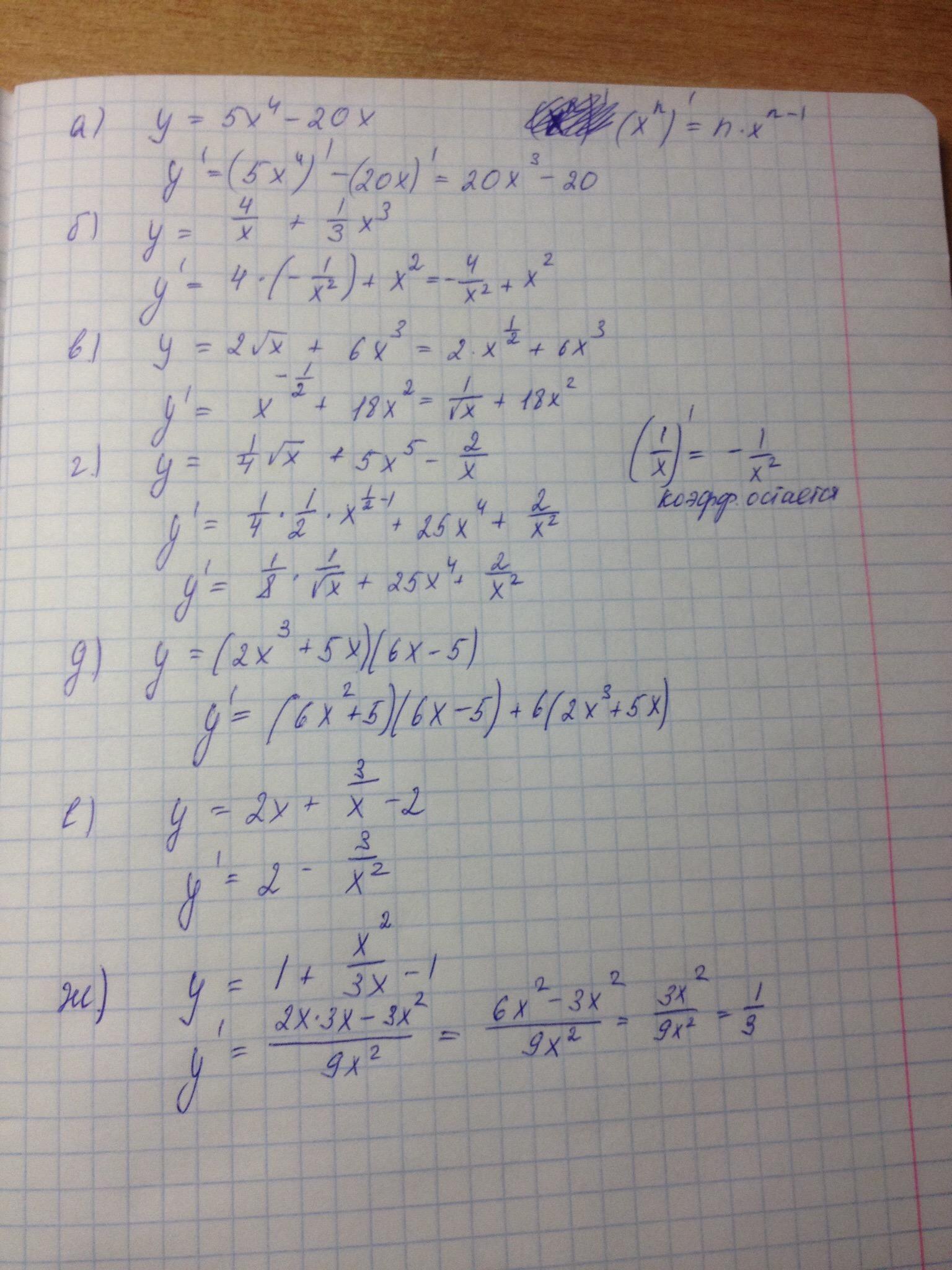 д) у=(2x^3 + 5x)(6x - 5)