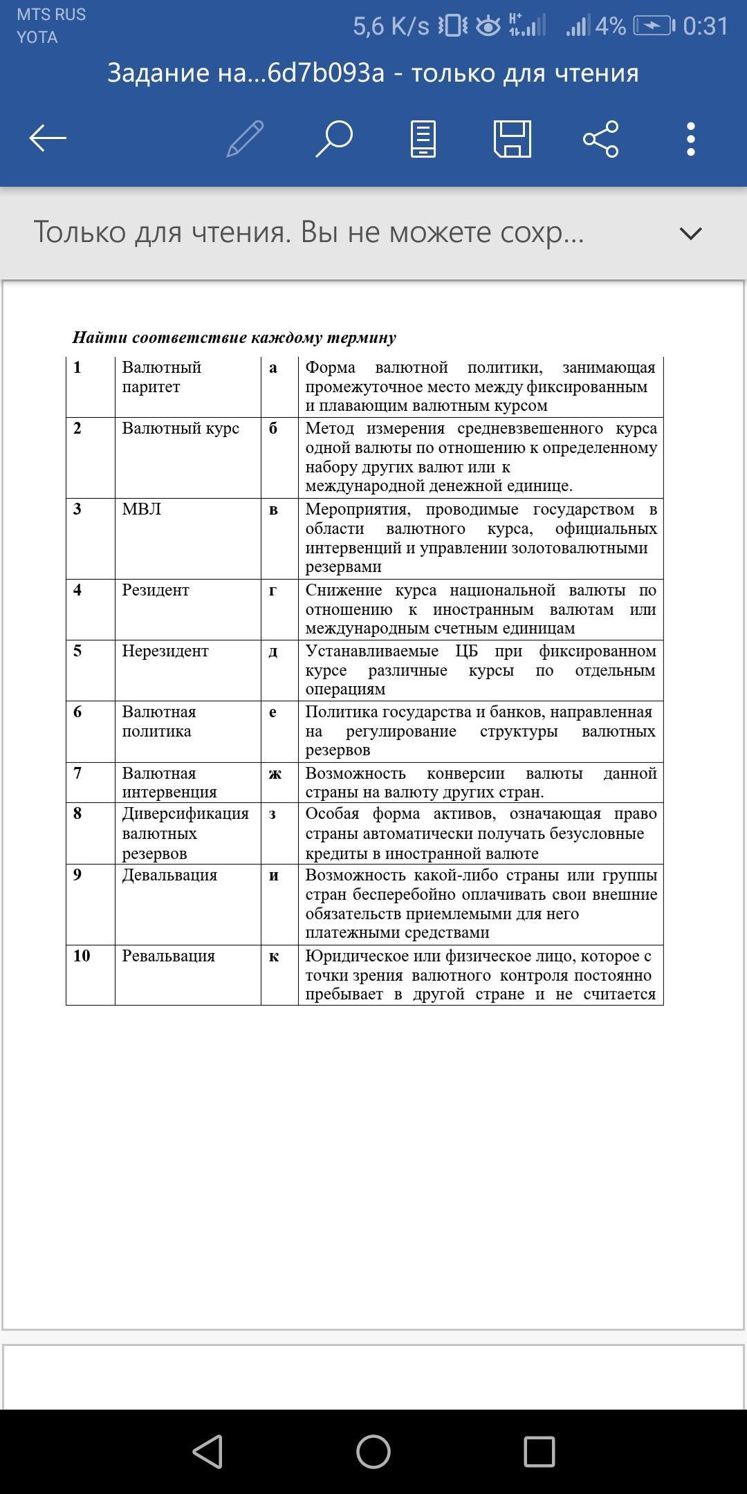 Найти соответствие каждому термину