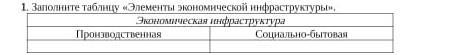Заполните таблицу элементы экономической инфраструктуры экономическая инфраструктура произведенная социально-бытовая . Помогите пж срочно надо