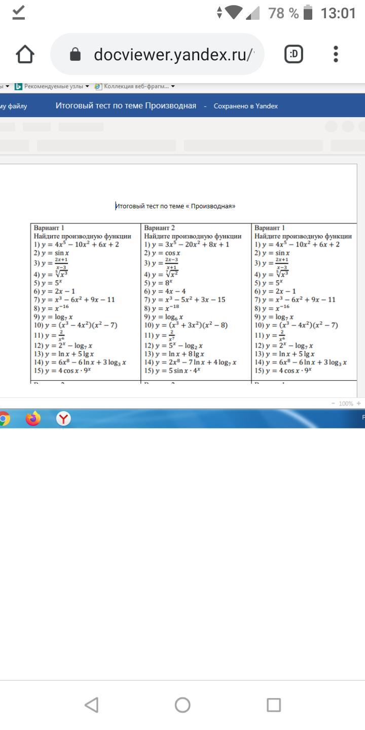 Помогите решить тест по теме "Производная" желательно ответы с решением всех вариантов