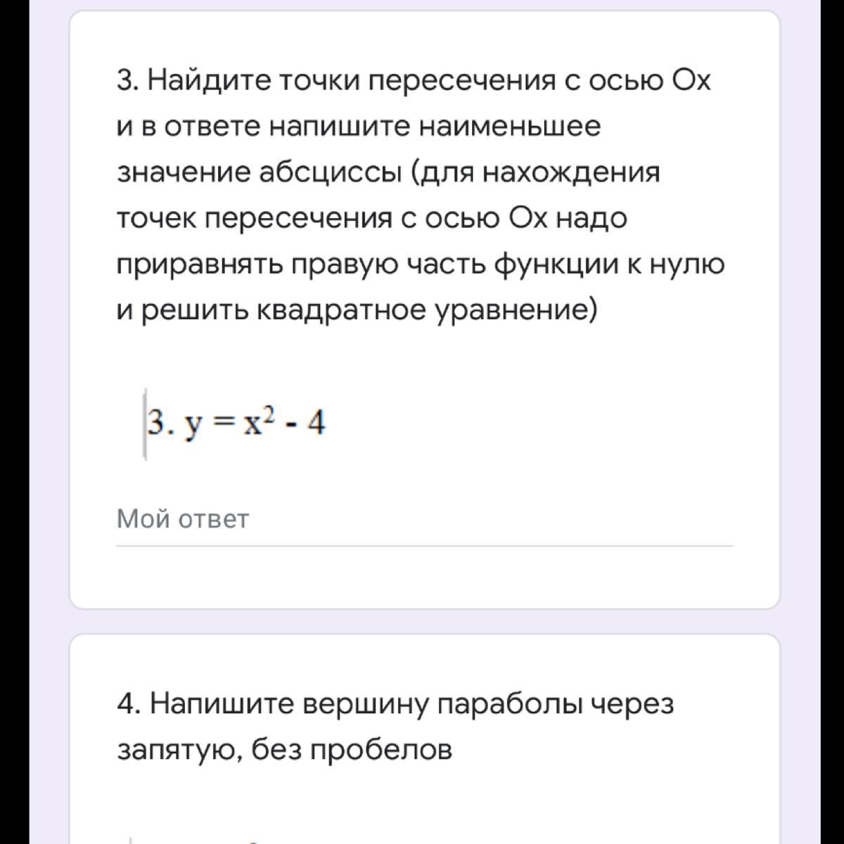 4. Напишите вершину параболы через запятую, без пробелов