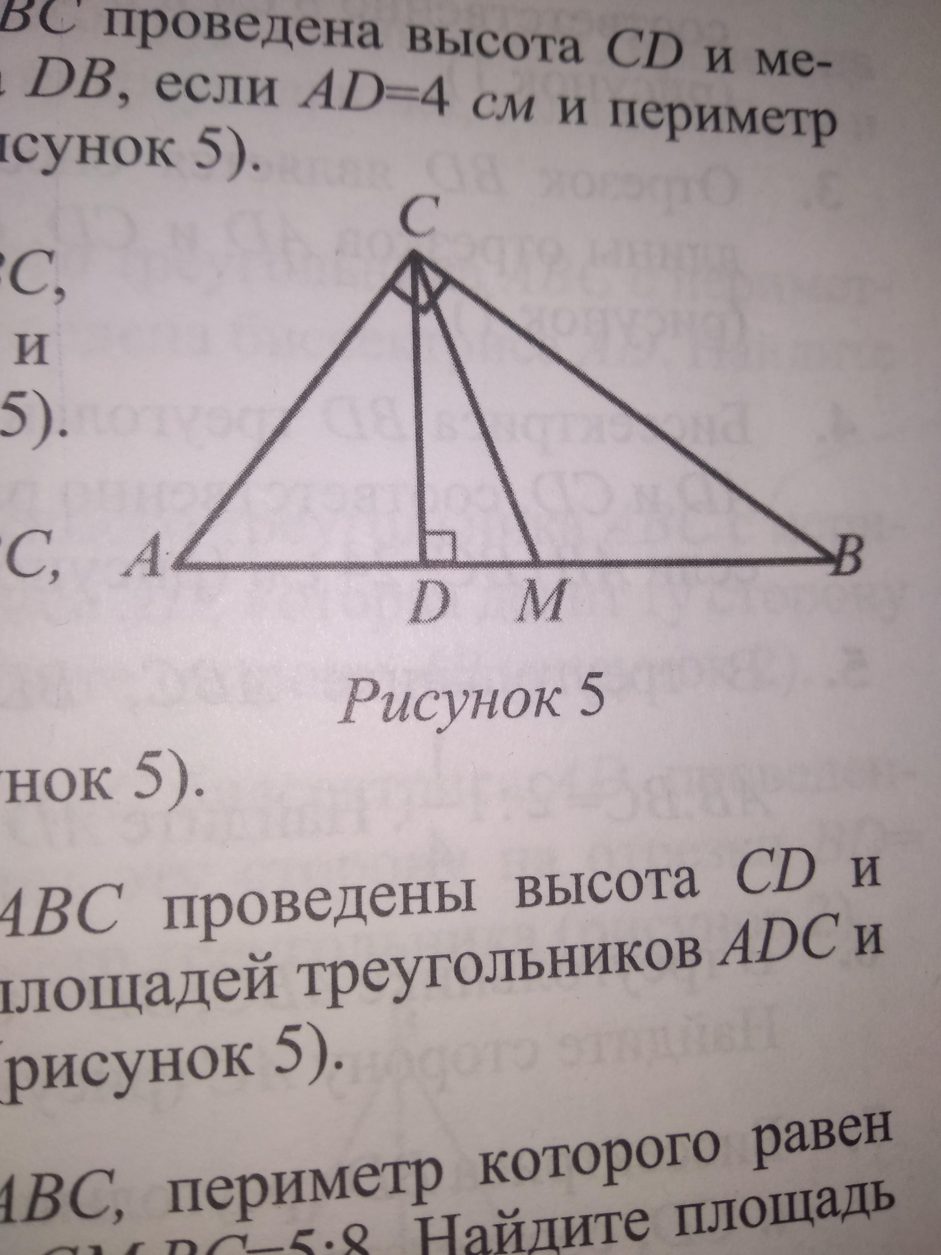 В прямоугольном треугольнике ABC,CD-высота,CM-медиана.Найдите периметр треугольника CDM,если AD=4 см и DB=25,6 см