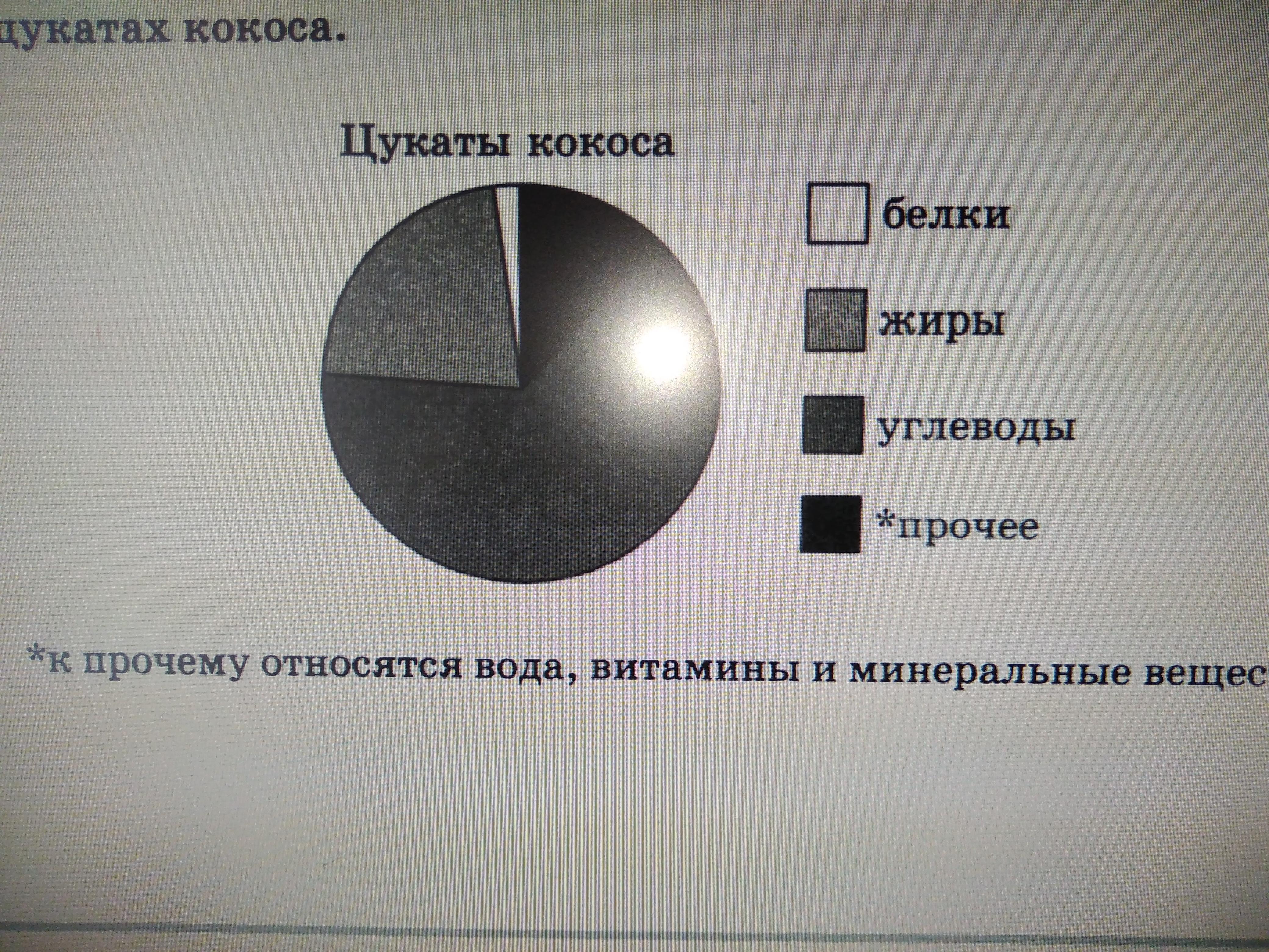 На диаграмме показано содержание питательных веществ в цукатах кокоса.