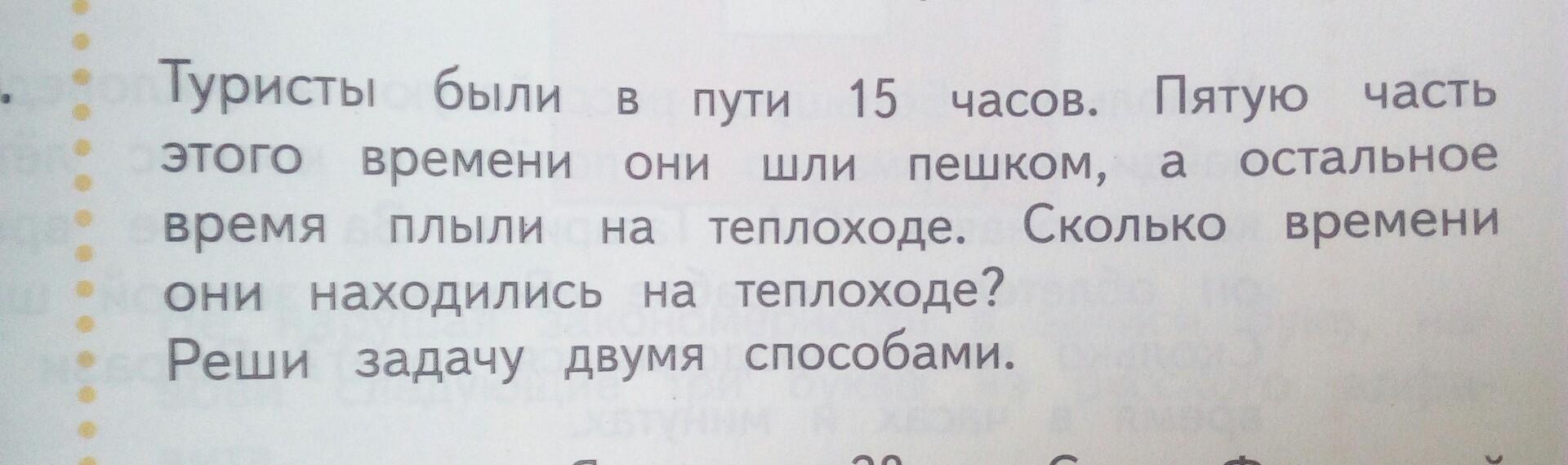 1) 15-5=10 десеть чесов они были,на теплоходе