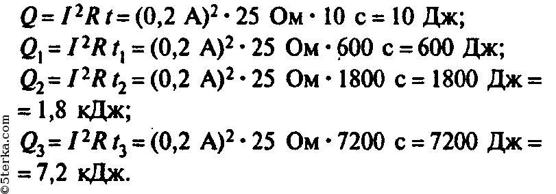 Какое количество теплоты выделится за 10 с в нити накала электрической лампы сопротивлением 25 Ом, если сила тока в ней 0,2 А; за 10 мин; за 0,5 ч; за 2 ч?