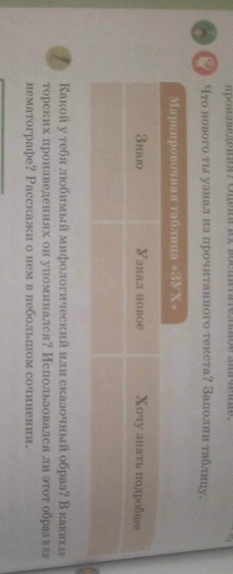 СКАЗОЧНЫЕ И МИФОЛОГИЧЕСКИЕ ЭЛЕМЕНТЫ В ЛИТЕРАТУРНЫХ ПРОИЗВЕДЕНИЯХ . Что нового ты узнал из прочитанного текста ? Заполни таблицу .Маркировонная таблица <<ЗУХ>>. Знаю , Узнал новое , Хочу знать пподробнее.ПОЖАЛУЙСТА ЭТО СРОЧНО !!!!