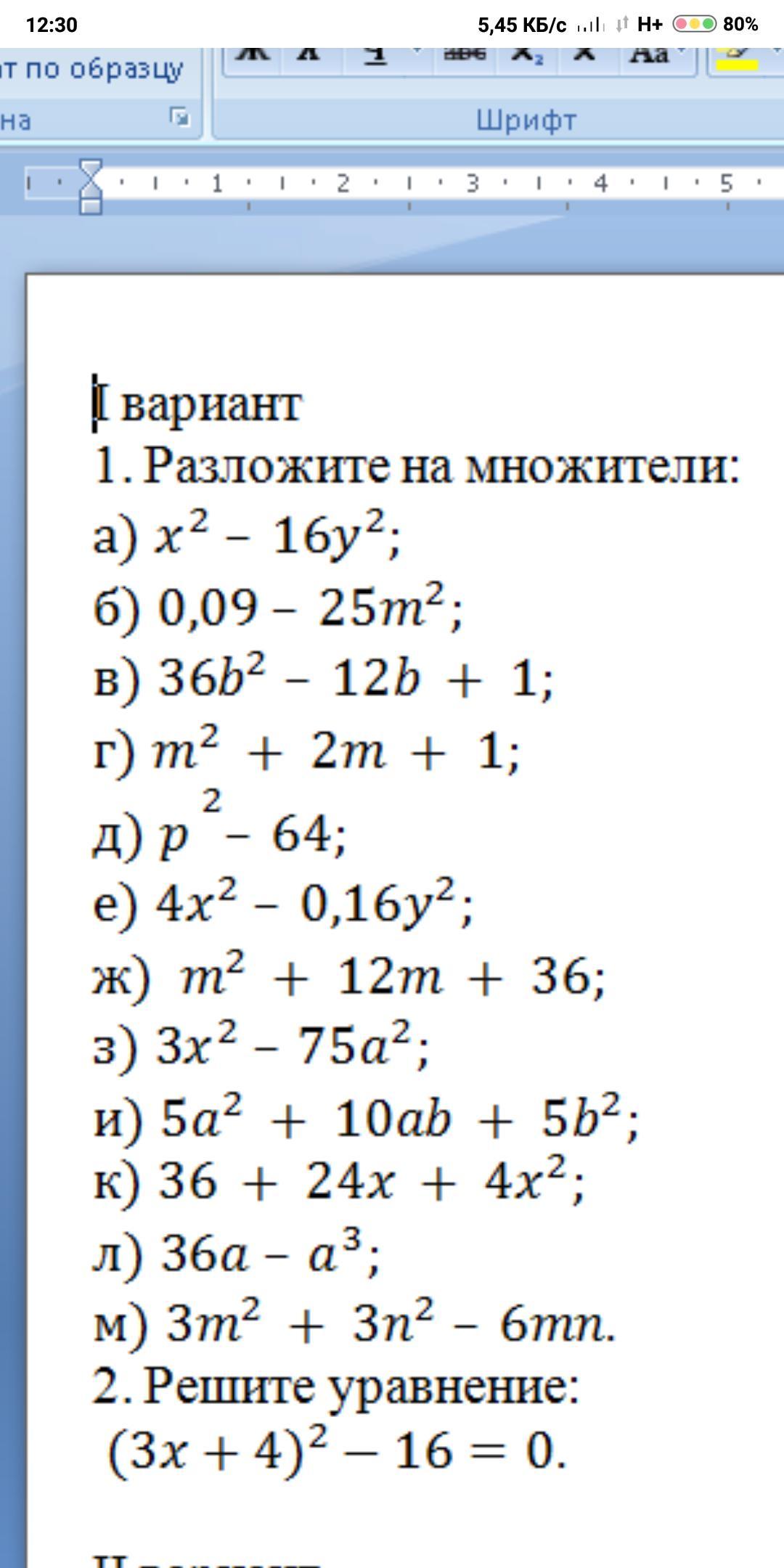b)0,09-25m²=(0,3-5m)(0,3+5m)