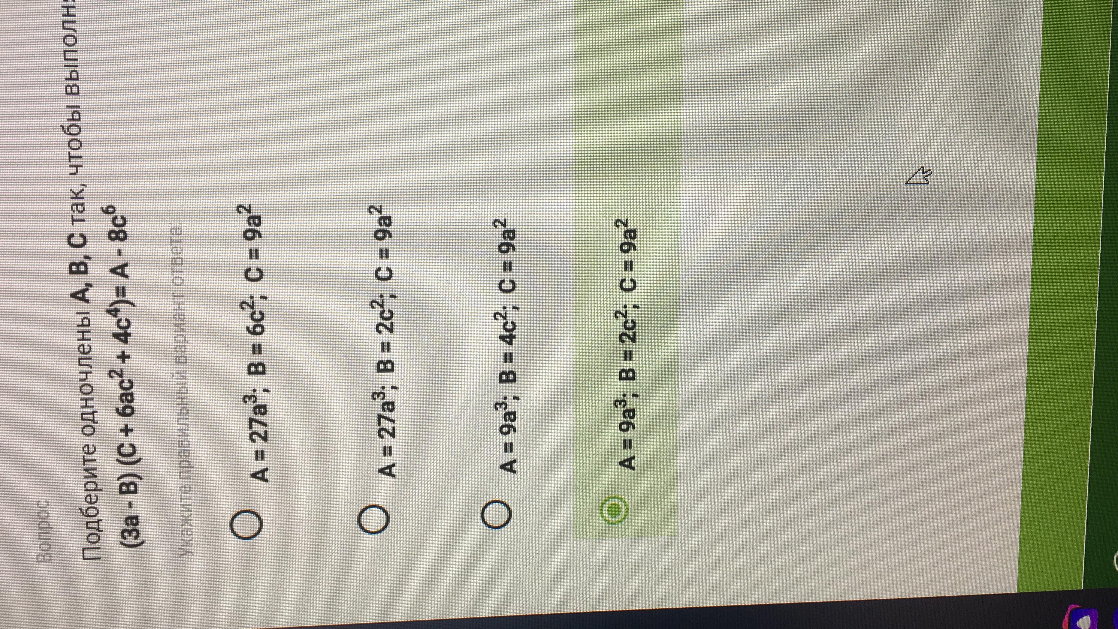 Подберите одночлены А,В,С так, чтобы выполнялось равенство: