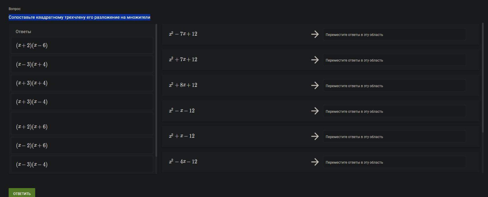 Сопоставьте квадратному трехчлену его разложение на множители И ещё Определите, сколько корней имеет уравнение , всё на фотках ниже
