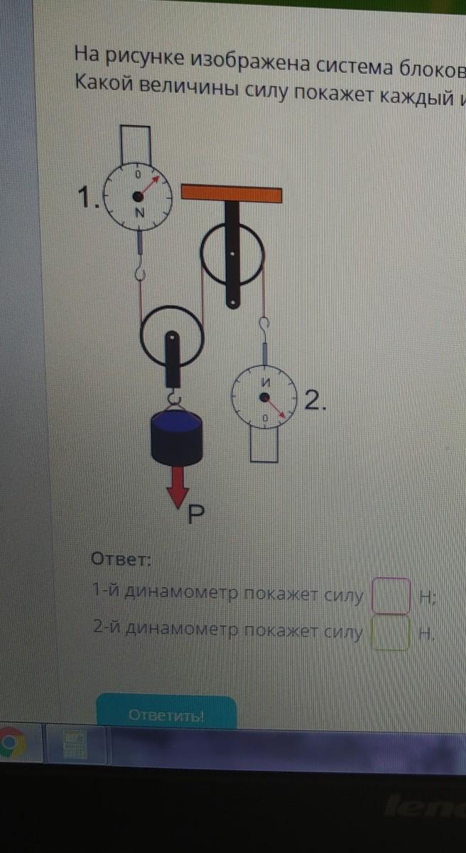 на рисунке изображена система блоков к которой присоединены два Динамо метра какой величины силу покажет каждый из динамометров? помогите!!!!