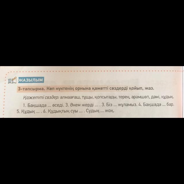 Ответ:Бақшада алмаағаш өседі. Әкем жерді қопсытады.Біз арамшөп жұламыз.Бақшада құдық бар.Құдық терең.Құдықтың суы тұщы.Судың дәмі жоқ