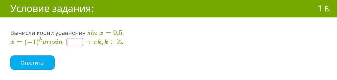 x=(−1)karcsin (ответ) +πk,k∈Z