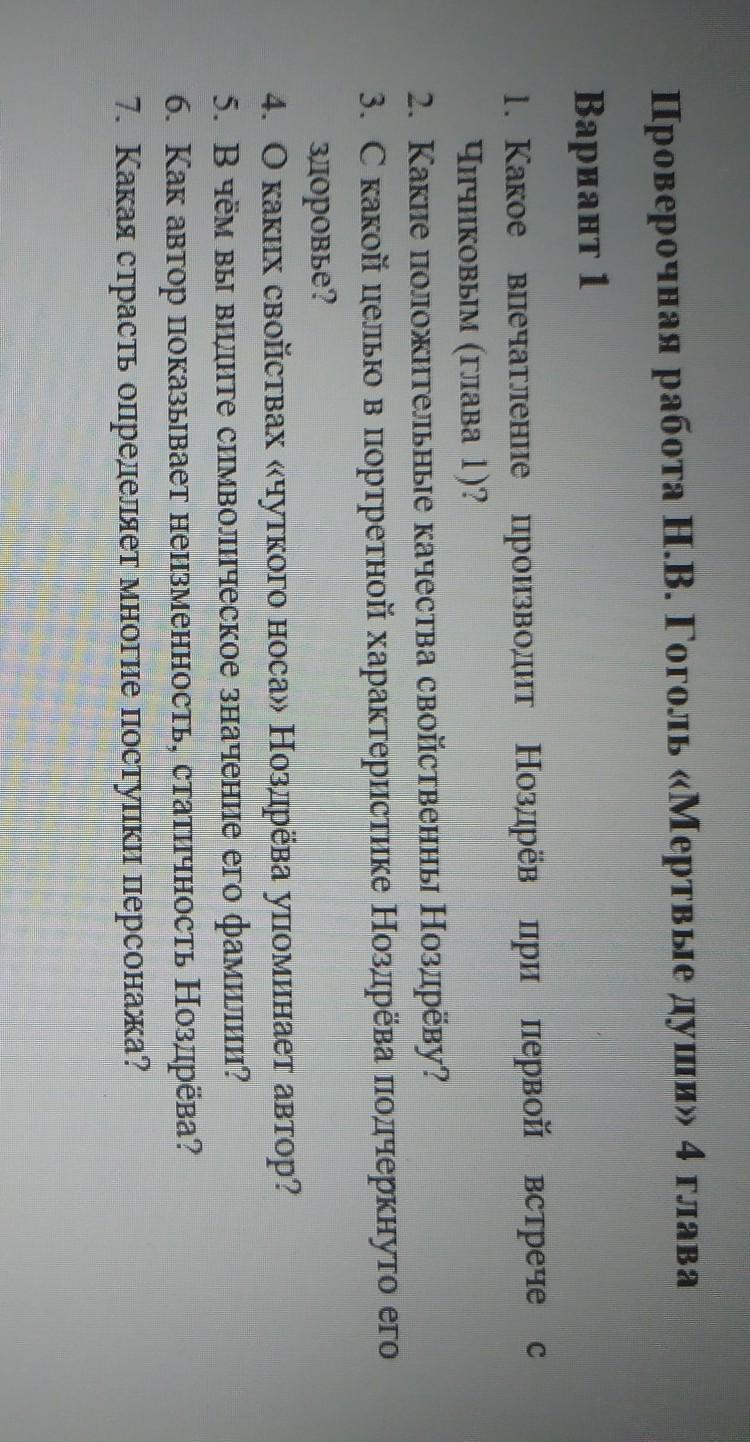 Проверочная работа Н.В. Гоголь «Мертвые души» 4 глава
