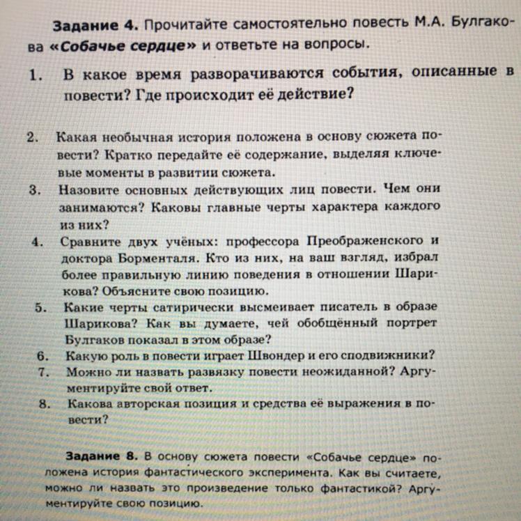 Помогите ответить на вопросы по произведению Булгакова «Собачье сердце»