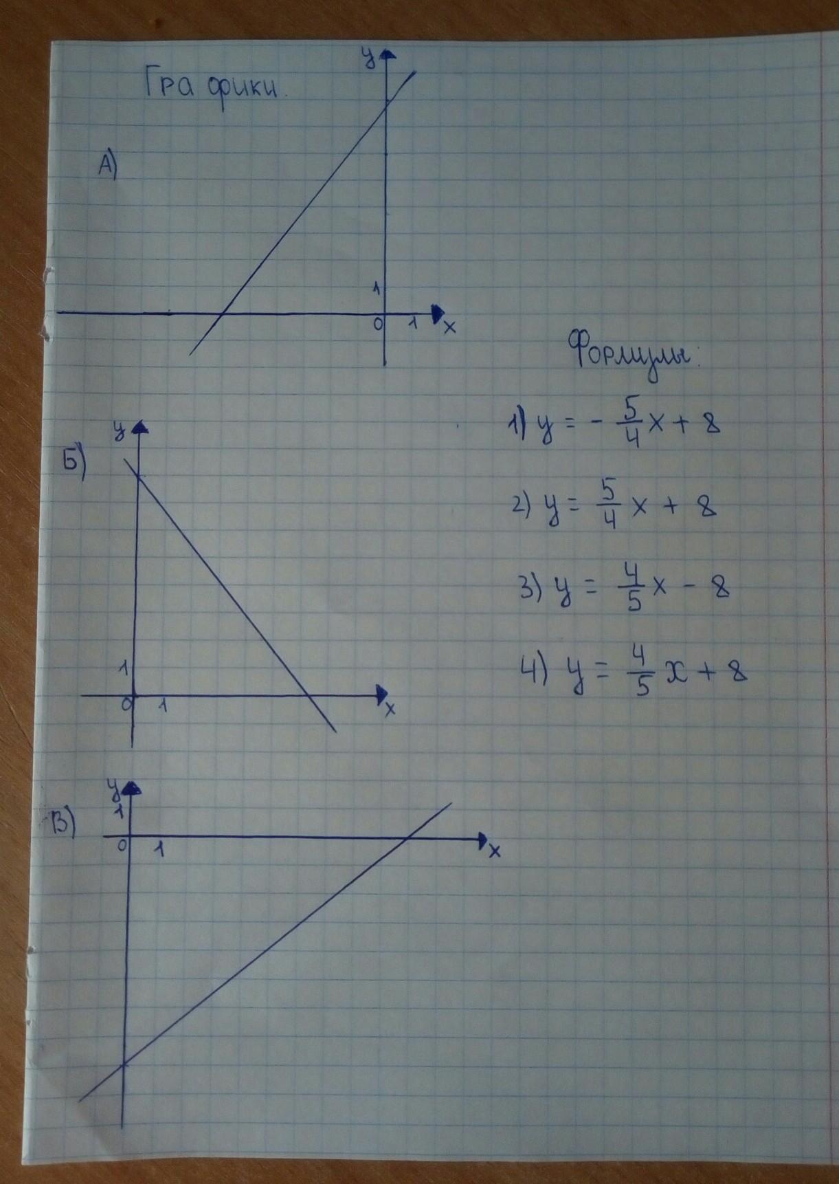 устонови соответствие между графиками функций и формулами , которые их задают.