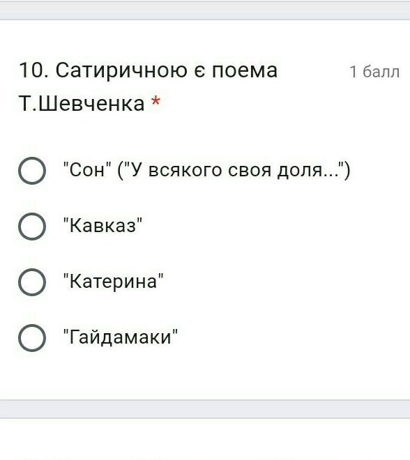 Нужно выбрать один ответ