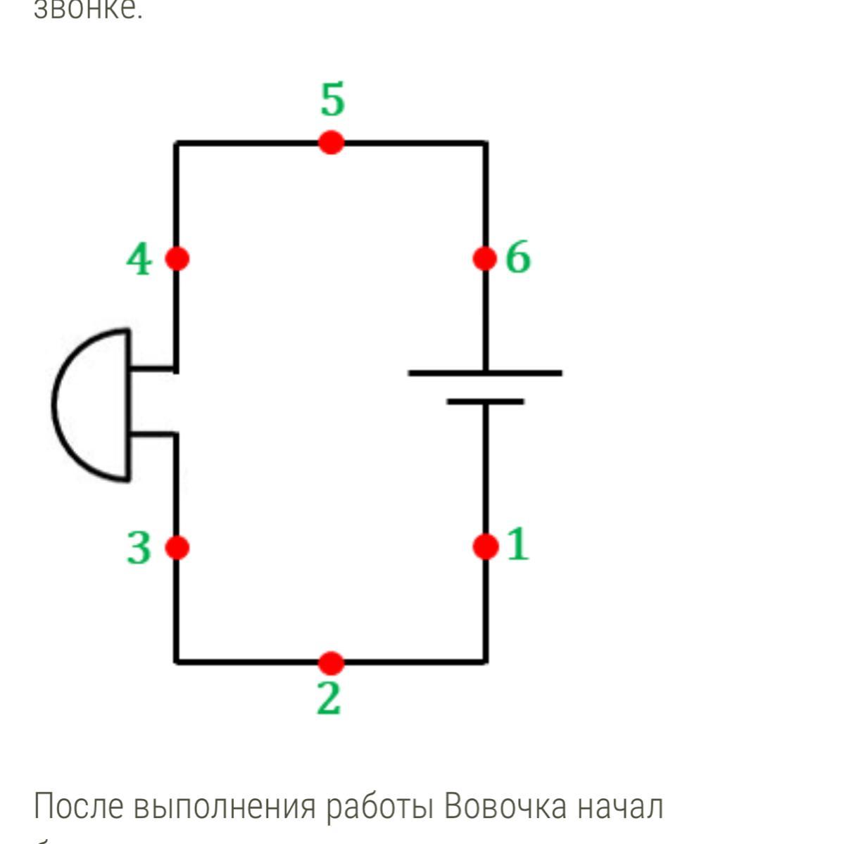 После выполнения работы Вовочка начал баловаться с проводами, соединяя по очереди различные точки цепи и наблюдая за изменением значения силы тока в звонке.