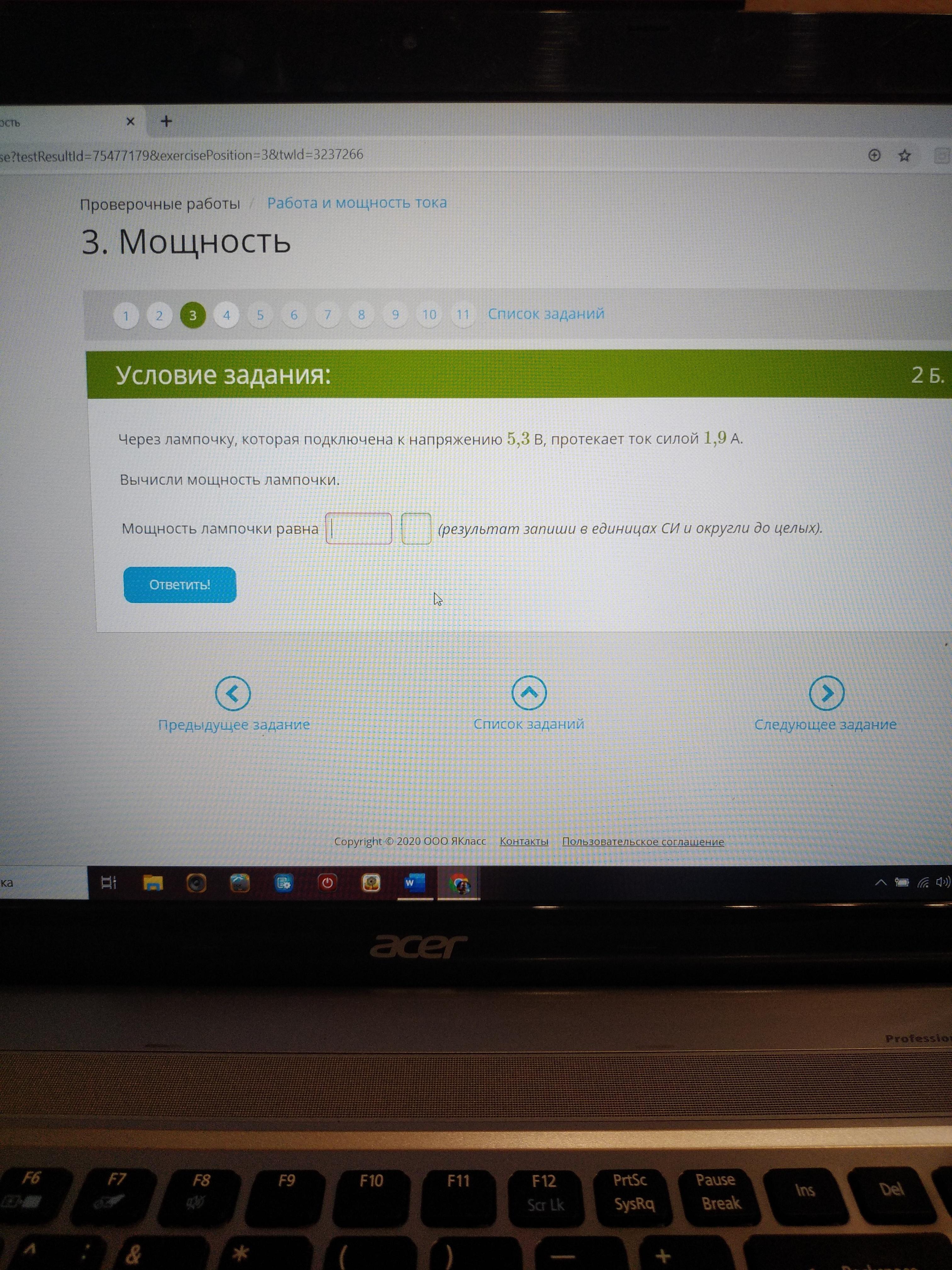 N=5,3*1,9=10,07=10Вт