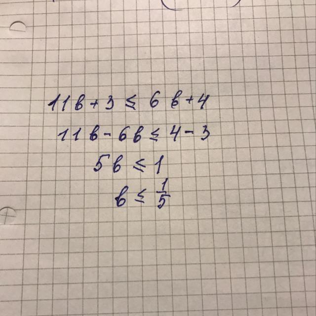 При каких значениях b значение двучленов 11b+ 3 не большие значение двучленa 6b+ 4 выберите правильный вариант ответа: