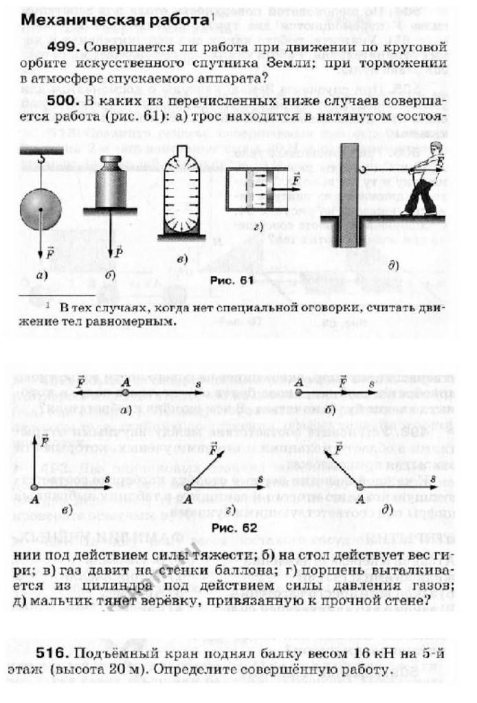 500. В каких из перечисленных ниже случаев совершается работа (рис. 1) а) трос находится в натянутом состоянии