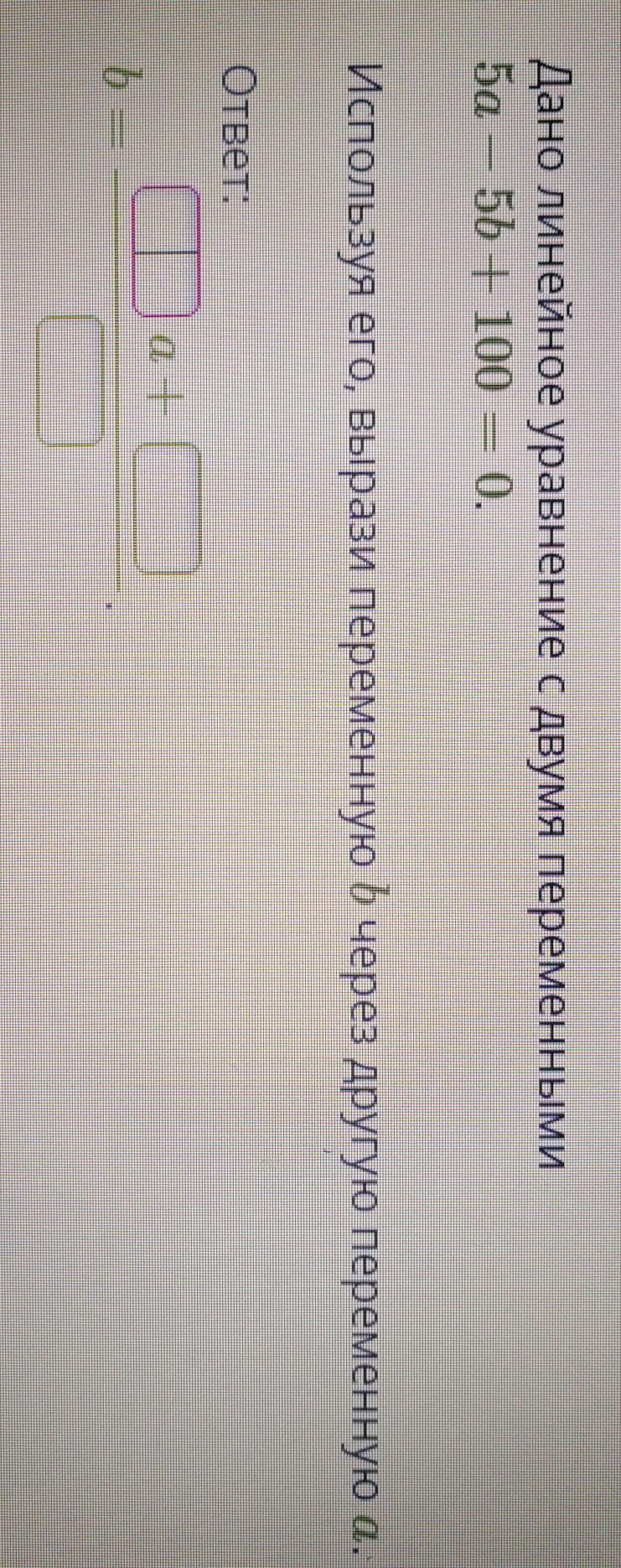 дано линейное уравнение с двумя переменными 5a-5b+100=0