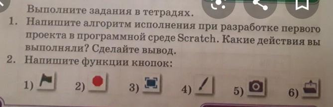задание №4 1)напишите алгоритм исполнения при разработке первого проекта в программной среде Scratch. Какие действия вы выполняли? Сделайте вывод: 2)Напишите функцию кнопок3)