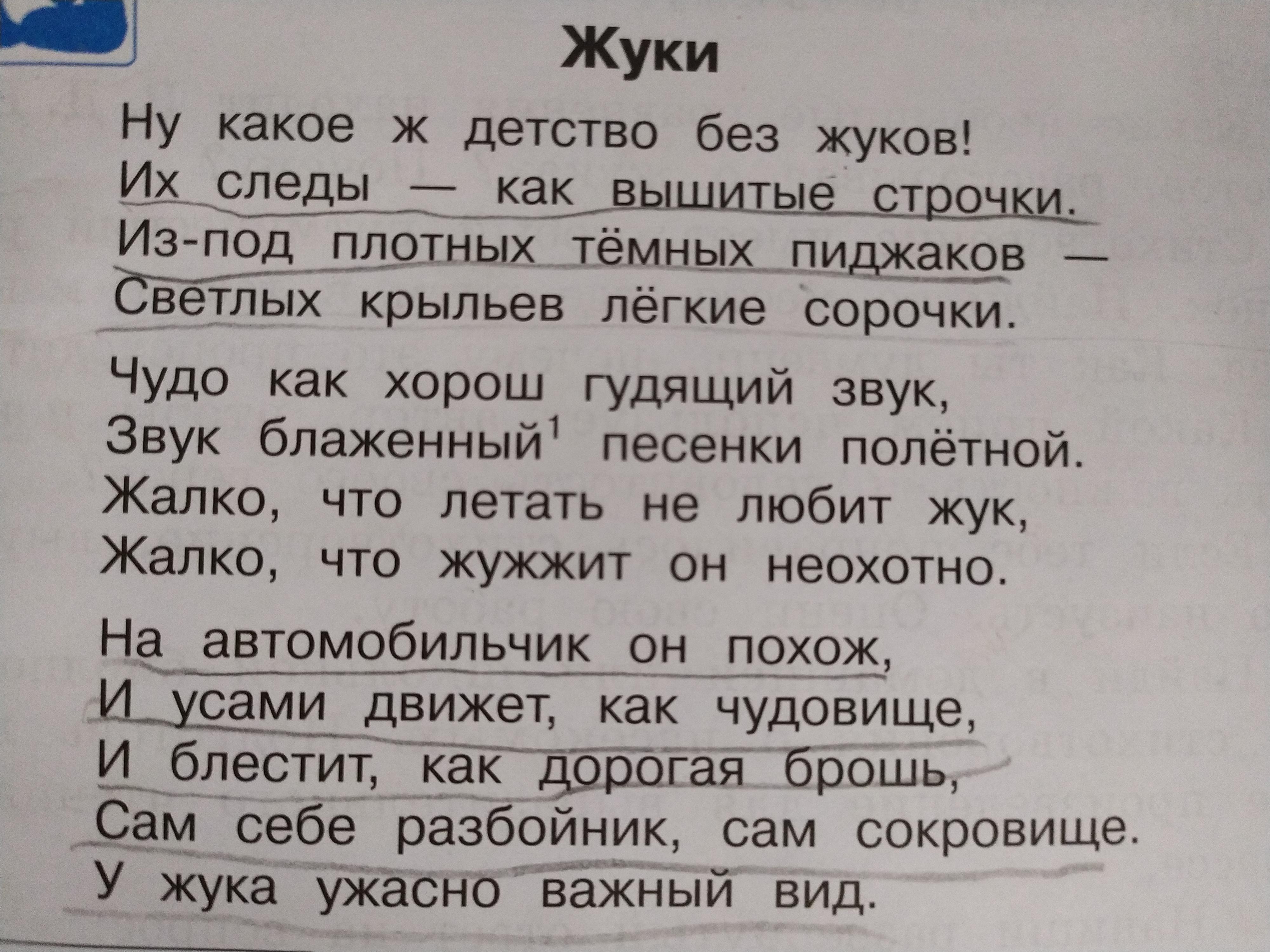 Стихотворение Берестова меня впечатлило своими интересными сравнениями, " их следы – как вышитые строчки " и другие. Он очень интересно описал жизнь и самих жуков, через окружающую их природу, с помощью литературных приёмов