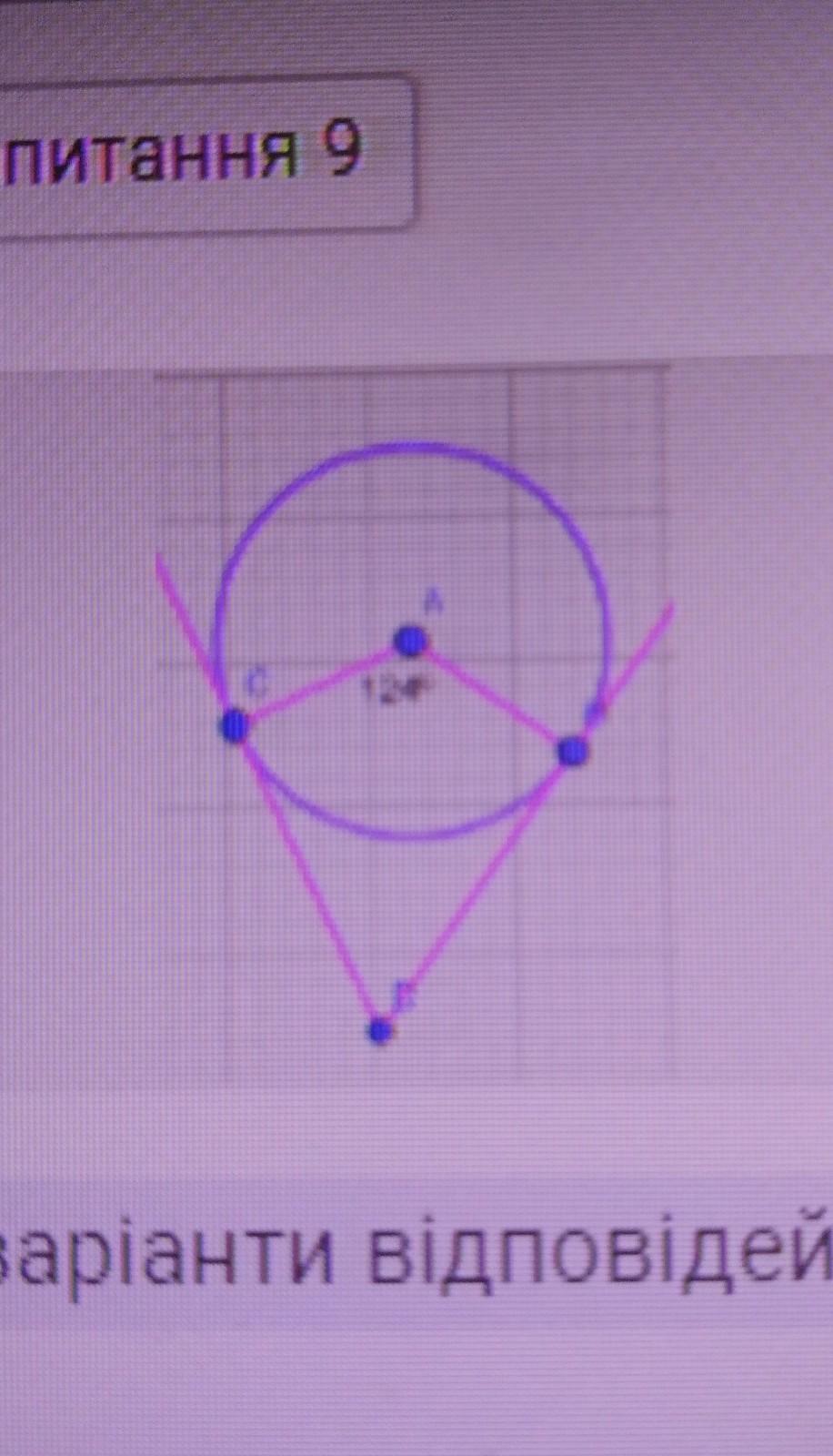 1.На малюнку DC і DB дотичні до кола з центром A,кутCAB=124°.Знайти кутCDB