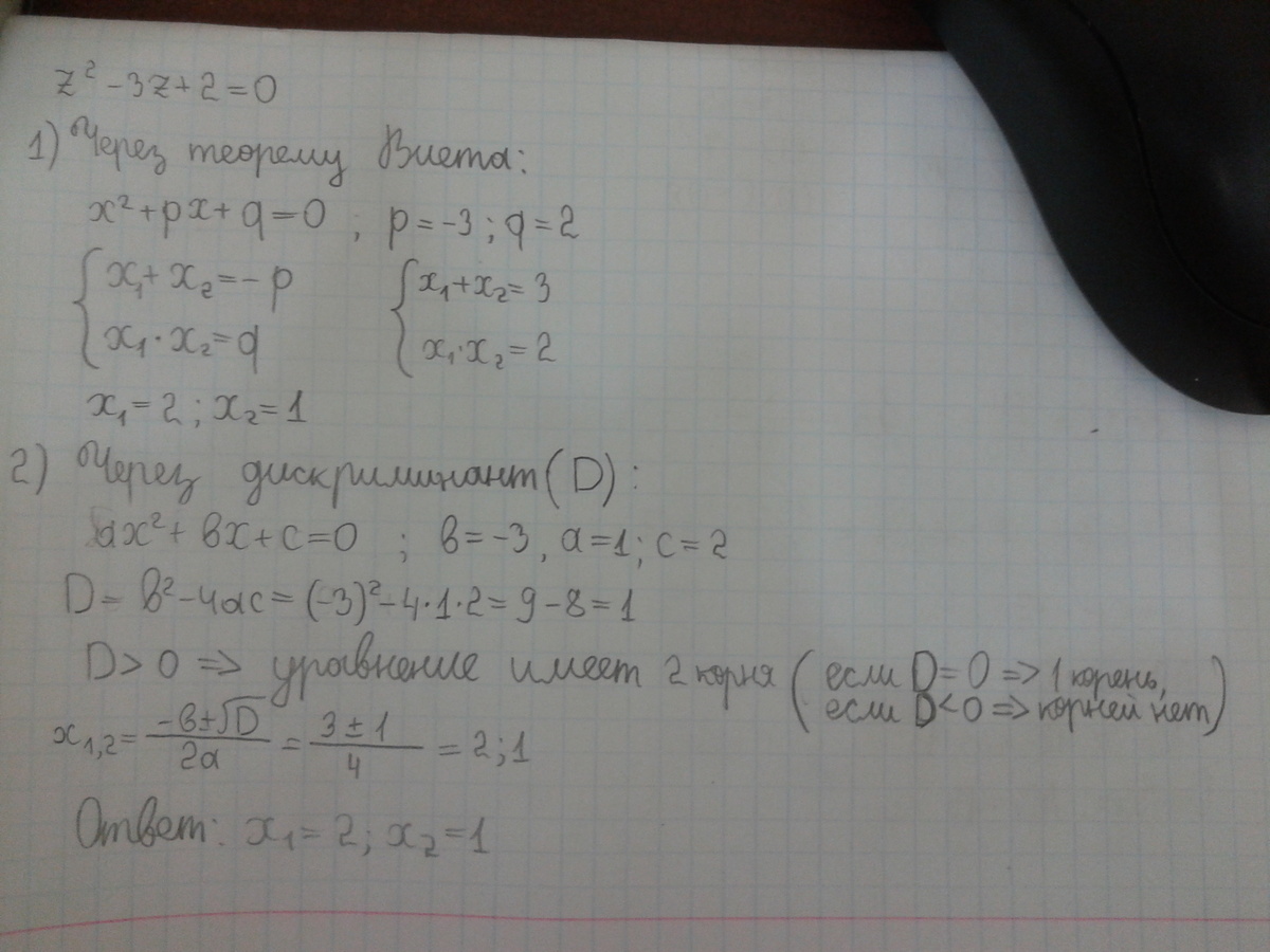 x1,2=(черта дроби) 3+-1(это сверху, минус пишется под плюсом); 2 снизу