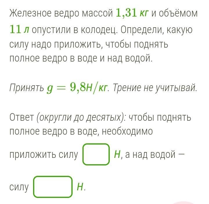 Ответ:Ведро наполнится водой, то есть 12л воды + 1.56 кг масса ведра