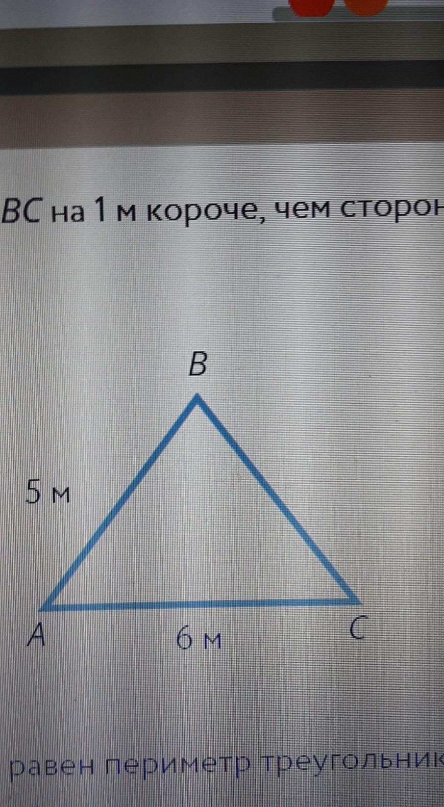 помогите пж: сторона BC на 1 м короче чем сторона AC. Чему равен периметр треугольника?