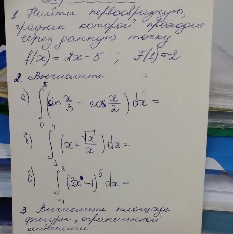 помогите решить. 1 задание. найти первообразную график которой проходит через данную точку f(x)=2x-5 F(1)=-2