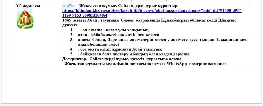 Абай Құнанбайұлы 1845 жылы Семей облысы Шыңғыс тауының баурайында дүниеге келген. 1) Ол қазақ халқының ұлы ақынын. 2) Әжесі еркелетіп Абай деп атап кеткен. 3) Әжесі Зере анасы Ұлжанның аңыз әңгімелерін тыңдап өскен болашақ ақын әңгімеге әуес болып өскен. 4)Абай бос уақытын кітап оқуға жұмсаған. 5) Абайдың өлең шығару дарыны бала кезінен байқалғанбъяснение: