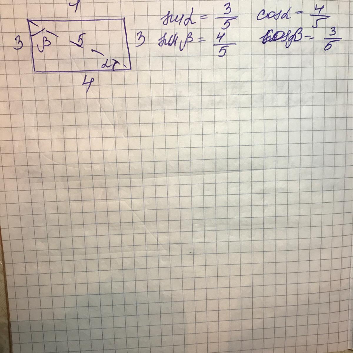Стороны прямоугольника равны 3 см и 4 см, найдите углы которые образуют диагональ со сторонами прямоугольника