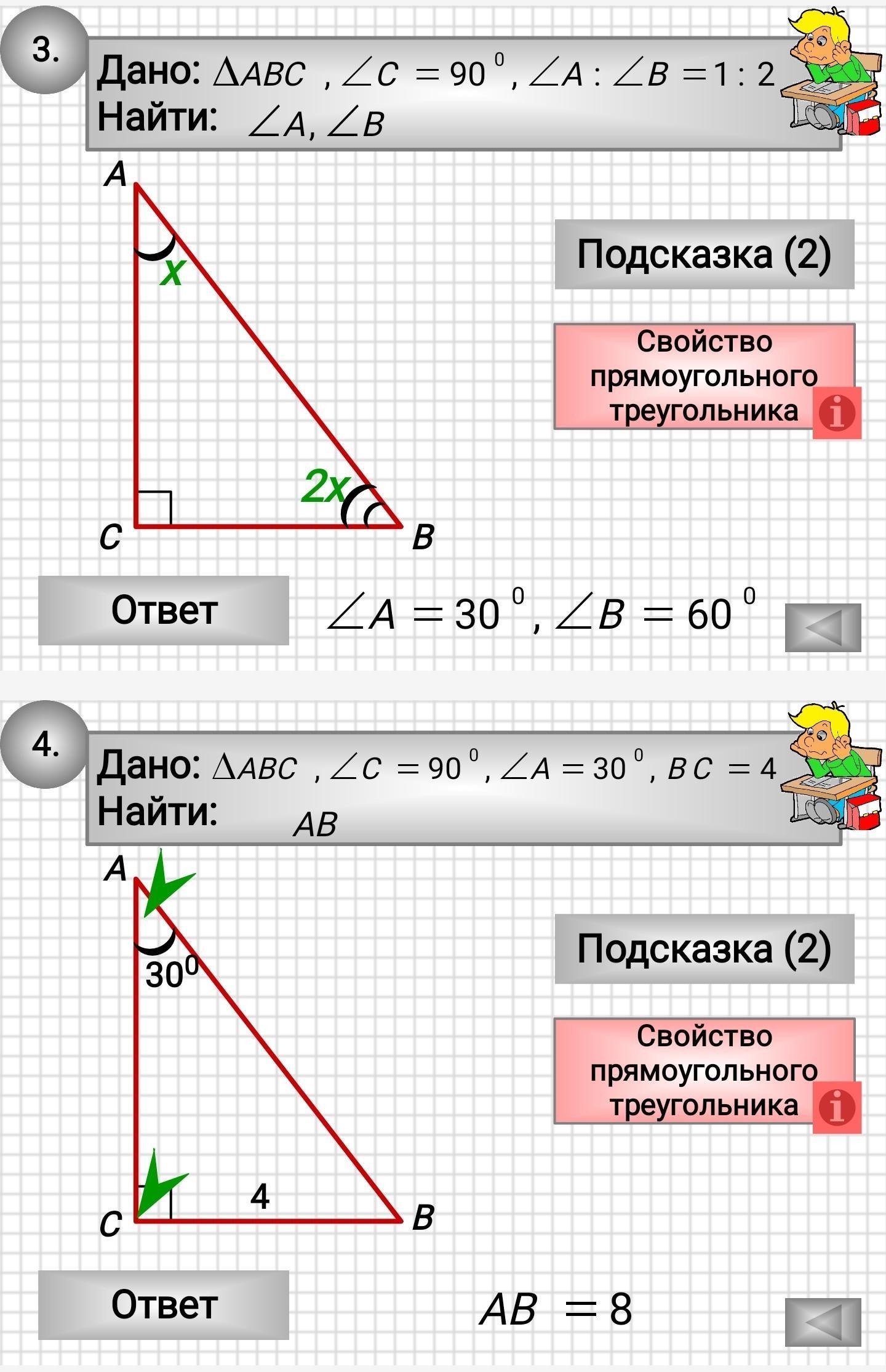 4.катет, который лежит напротив угла 30 градусов равняется половине гипотенузы, поэтому