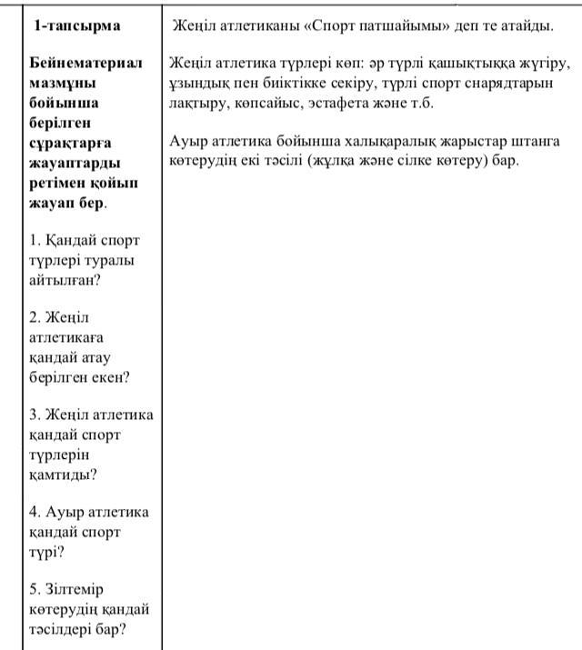 Бейнематериал мазмұны бойынша берілген сұрақтарға жауаптарды ретімен қойып жауап бер.