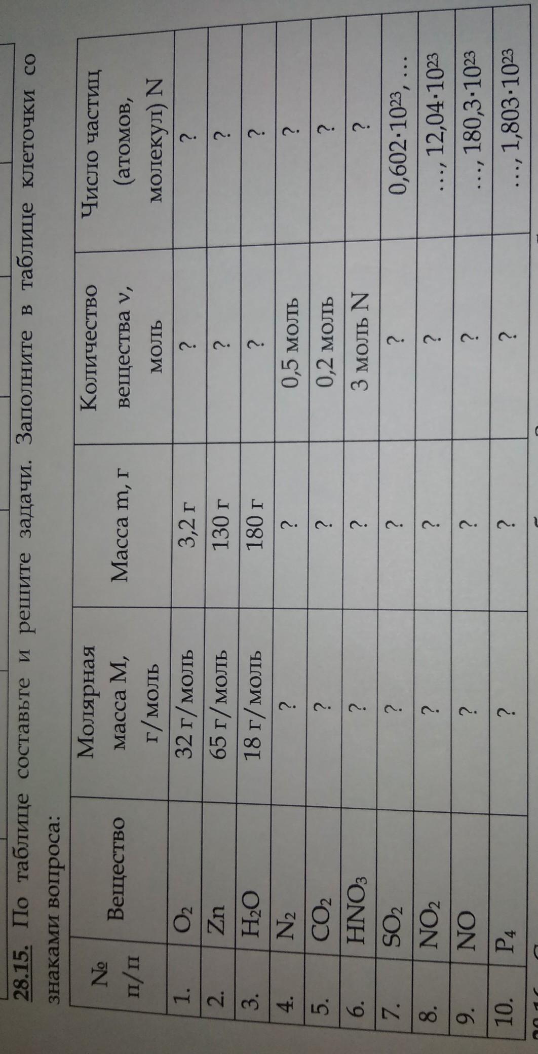 Помогите с химией. По таблице составить и решить задачи. Заполнить в таблице клеточки со знаками вопроса: