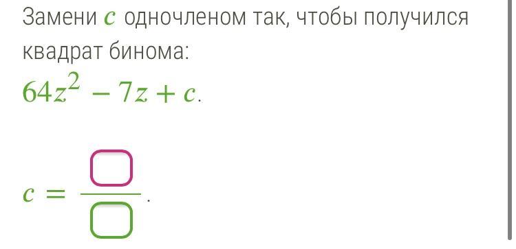 Замени одночленом так, чтобы получился квадрат бинома: пример на фото.