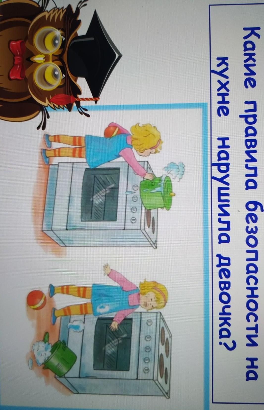 Объяснение: Девочка тянет кастрюлю одной рукой, когда та закипает. И в руке она держит резиновый мяч. Во - первых, нельзя снимать кастрюли с комфорки одной рукой к тому же без прихвата. Во - вторых, нельзя держать возле огня легко воспламеняемые предметы и вещи. и снимать кастрюлю с комфорки когда та закипает - опасно