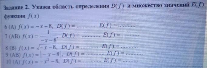 указать область определений и значений