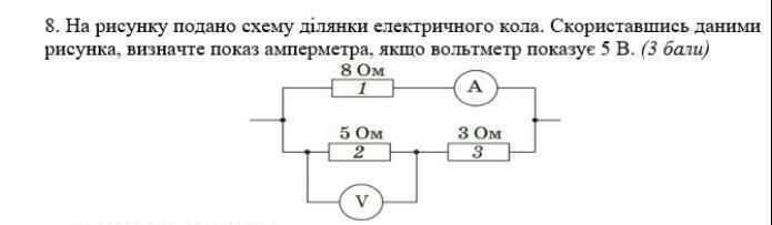 рисунка, визначте показ амперметра, якщо вольтметр показує 5 B.