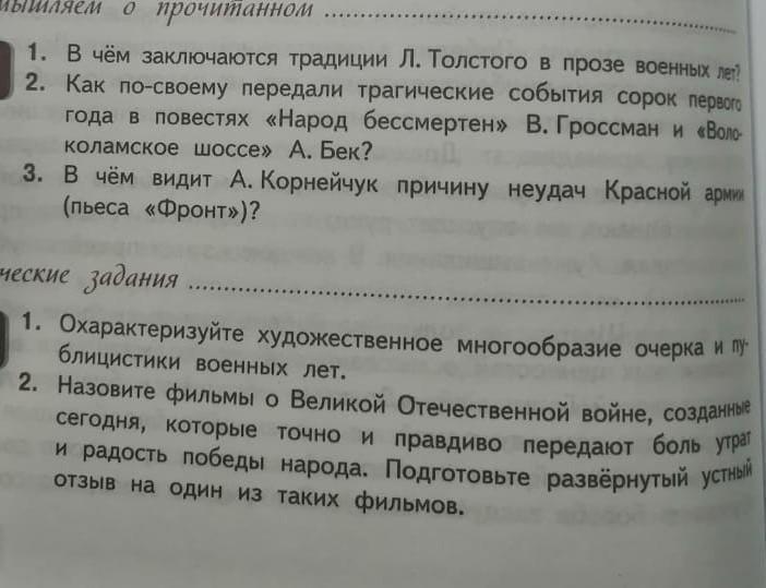 1)Обогащение военной прозы происходит преимущественно за счет традиций, углубляющих психологический анализ, нацеленных на постижение человека во всей сложности его взаимоотношений с миром. Все большее место при этом занимает постановка на военном материале общечеловеческих проблем, разоблачение противоестественности войны, обращение к антивоенной традиции, под которой исследователи понимают традицию, восходящую к творчеству Л. Толстого.