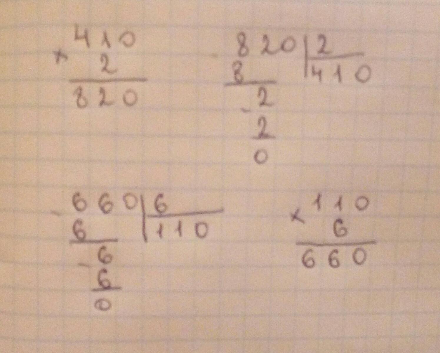 660/6=110 извини но тут сложно писать столбиком так что только так. А проверка 820 раздели 2 получишь 410 и 110 умножишь на 2 получишь 660